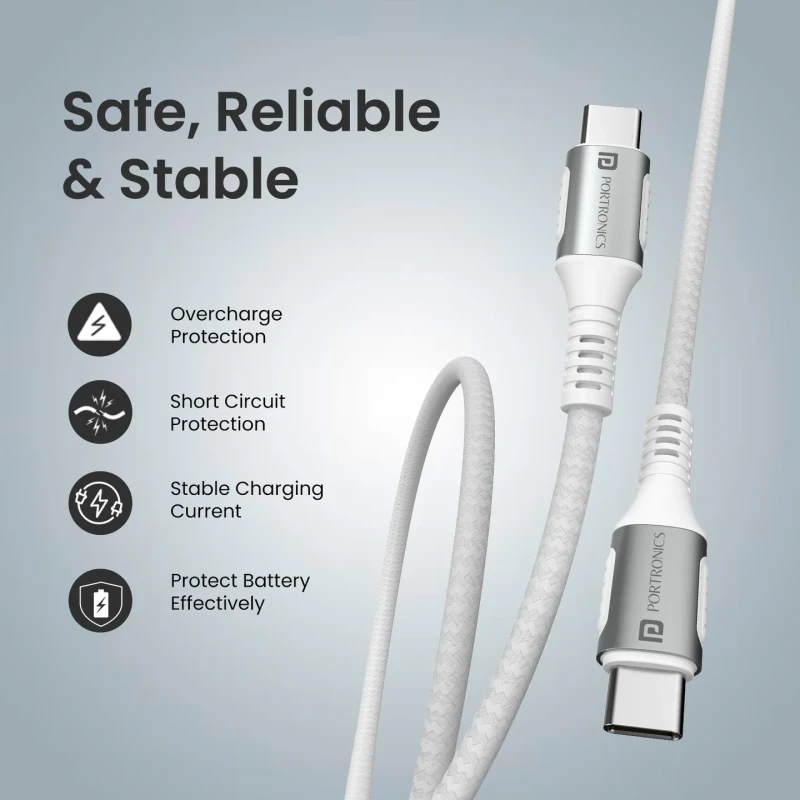 In short, the Portronics Konnect Y - Type C to Type C Cable is more than just a charging wire – it’s a smart investment for people who want fast charging, reliable data transfer, strong durability, and universal compatibility. Whether you need a dependable cable for daily use or travel, the Konnect Y is a trusted choice.