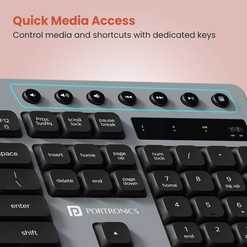 The keyboard comes with multi-media hotkeys that provide quick access to essential functions like volume control, play/pause, internet browsing, and more. This not only saves time but also enhances your workflow, making it perfect for professionals, students, and home users alike. The integrated smartphone holder is a thoughtful addition, allowing you to keep your phone at an ideal viewing angle while working—perfect for video calls, multi-tasking, or checking notifications without breaking your focus.