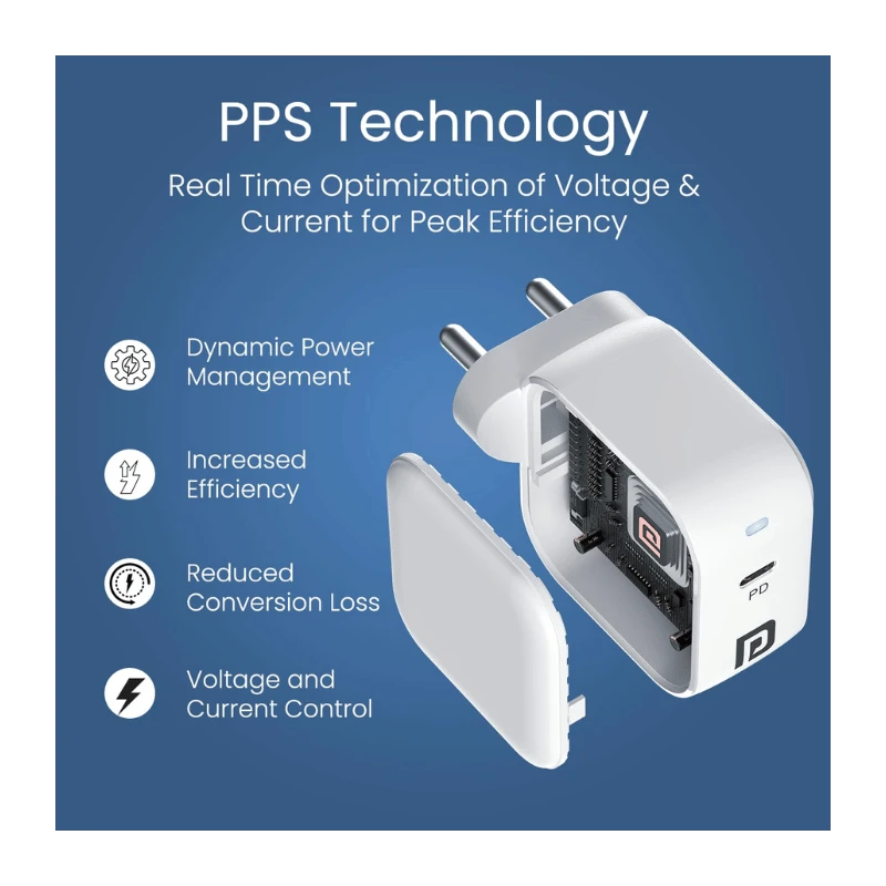 Equipped with USB Type-C Power Delivery (PD) support, the Adapto 45C offers blazing-fast charging for smartphones, tablets, laptops, and other USB-C devices. With its intelligent power distribution, it ensures your device receives the optimal amount of power, reducing charging time significantly while protecting your battery’s health. The inclusion of PPS (Programmable Power Supply) technology allows dynamic voltage and current adjustment, ensuring safe and efficient charging for even the latest flagship devices like Samsung Galaxy S-series, iPhones with PD support, iPads, MacBooks, and more.