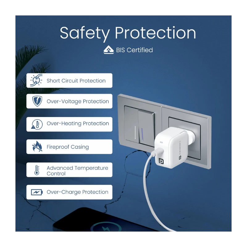 The charger comes bundled with a durable Type-C to Type-C cable, ensuring you have everything you need right out of the box. The high-quality cable is built for fast data transfer and charging, offering extra convenience. Safety is a top priority with the Adapto 45C—it comes with built-in multi-protection safeguards against over-current, over-voltage, overheating, and short circuits, ensuring both the charger and your devices remain safe.