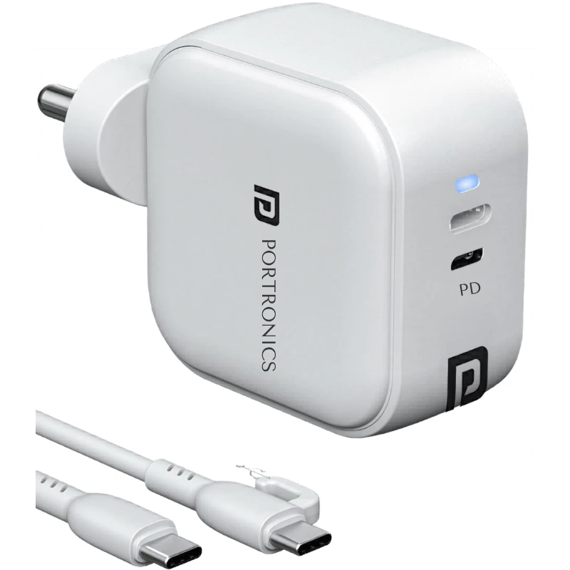 The Adapto 45C is a next-generation fast charger designed for modern devices that demand speed, safety, and efficiency. Powered by advanced GaN (Gallium Nitride) technology, this charger is compact yet powerful, delivering superior performance compared to conventional silicon-based chargers. Its sleek and lightweight design makes it highly portable, allowing you to carry it effortlessly for travel, office, or daily use.