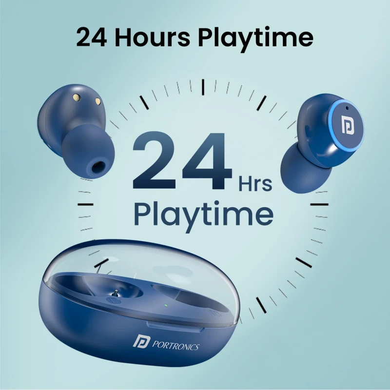 The Harmonics Twins S13 offer an impressive playtime of up to 40 hours with the charging case, ensuring you enjoy your favorite tracks without worrying about frequent recharges. The Type-C fast-charging feature gives you hours of playback in just minutes of charge. Portronics recommends charging for 3 hours before first use for best performance.